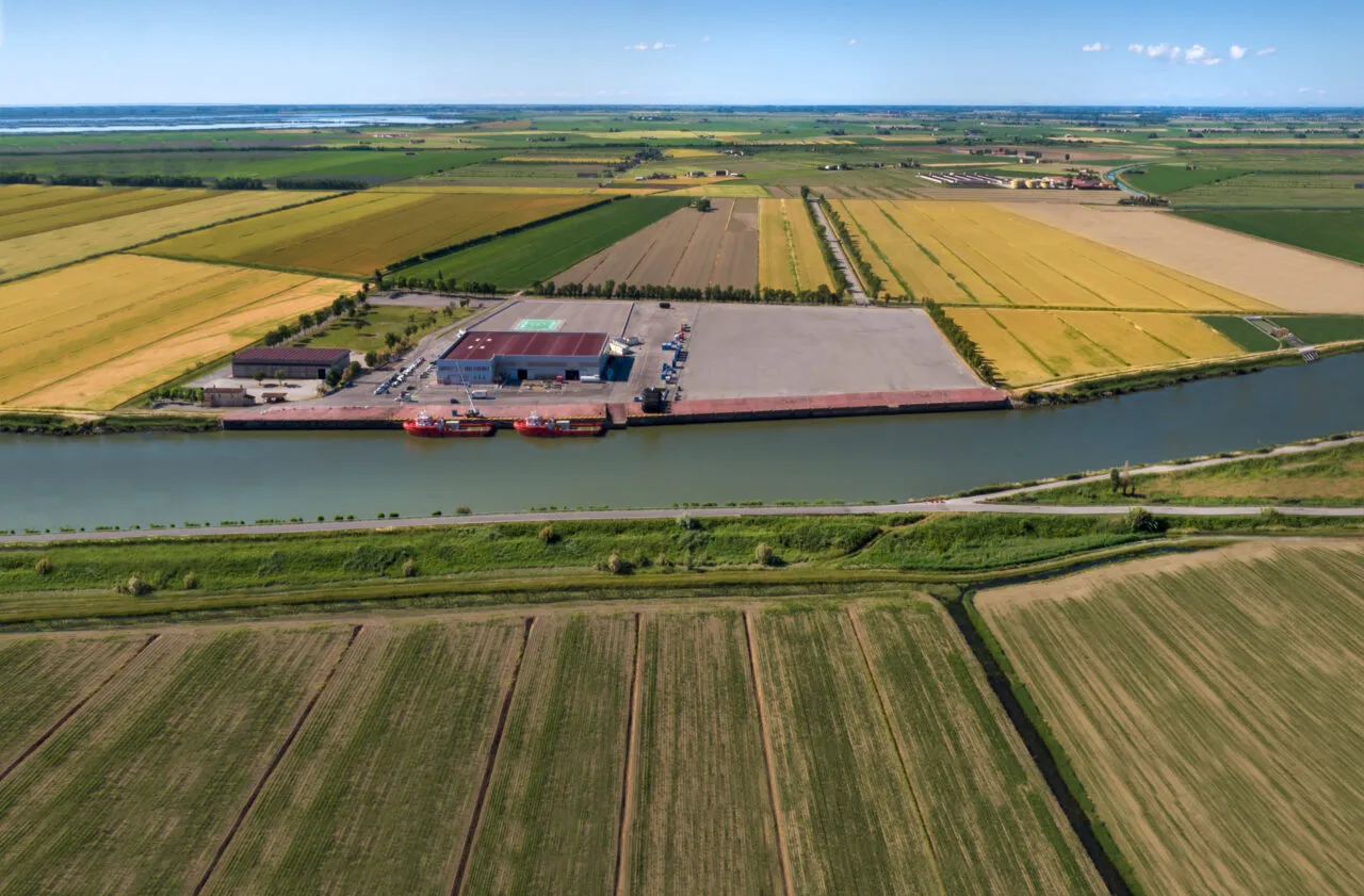 Porto Levante Terminal is a river-sea terminal with an industrial and logistic expansion area, located in the Municipality of Porto Viro (RO), along the last navigable stretch of the Po di Levante (part of the Fissero-Tartaro-Canal Bianco waterway), 5 km from the mouth, equidistant from Venice and Ravenna, and excellently connected to the main road/highway arteries through the Strada Statale Romea (SS 309). Main Distances: Strada Statale 309 Romea (Ravenna-Venice) - 2 km Autostrada A13 Bologna/Padova tollbooth "Boara-Rovigo Nord" - 47 km Autostrada A4 Torino/Trieste tollbooth "Padova Est" - 62 km