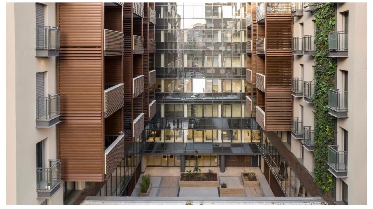 Corte Trastevere is a modern office complex located in the heart of Rome, in the Trastevere district. Offering more than 4,000 sqm of flexible spaces across four floors, it features customizable layouts, open spaces, meeting rooms, and serviced offices. The spaces are equipped with raised floors, centralized air conditioning, and high-quality finishes.