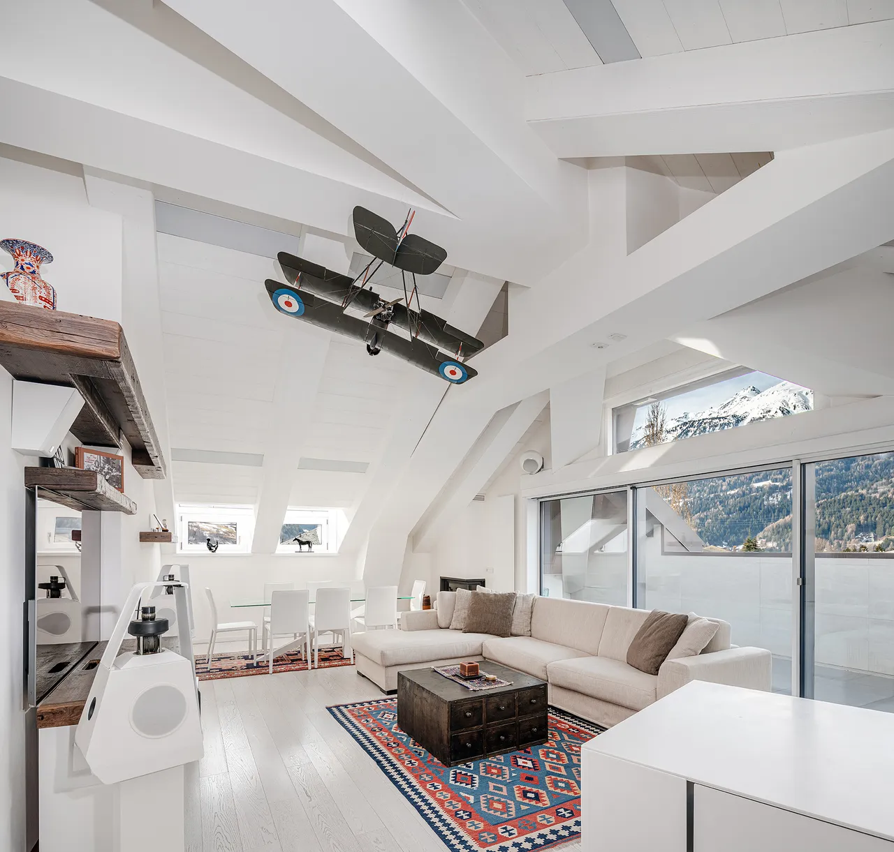 Un’architettura minimalista e total white, concepita per chi ricerca il rigore del razionalismo e l’essenzialità della contemporaneità, senza rinunciare al fascino del panorama alpino.