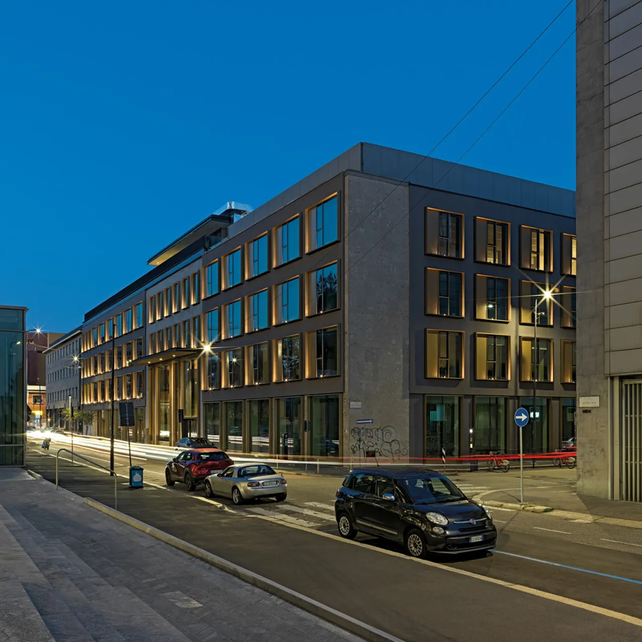 Questo centro direzionale รจ composto da due immobili indipendenti ciascuno con ingresso privato e reception dedicata, si propone come luogo di lavoro unico e identitario.